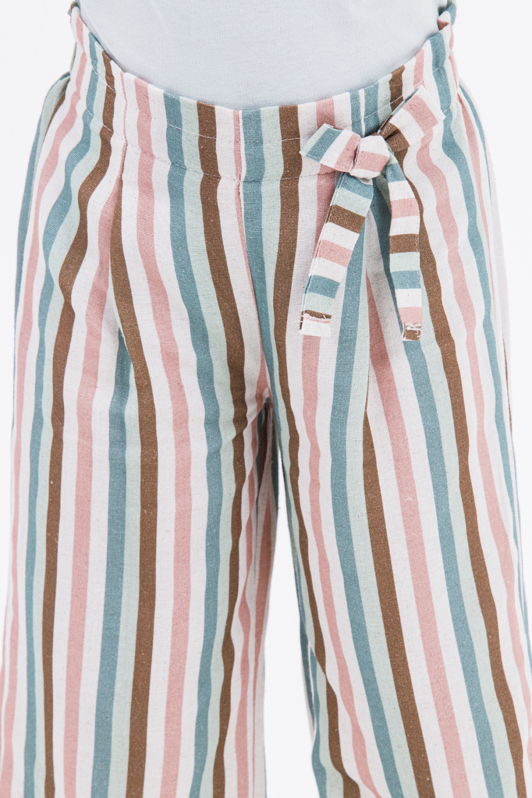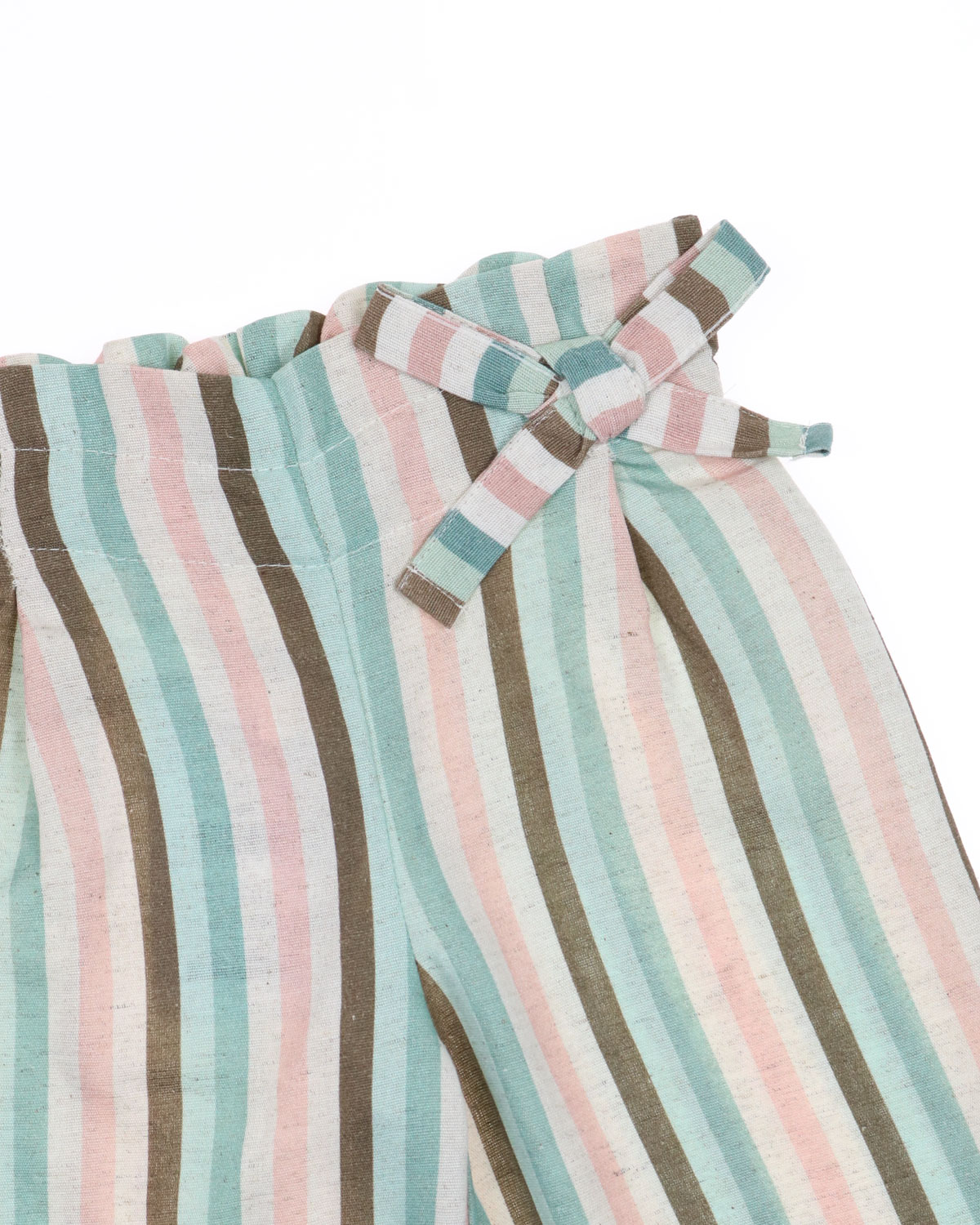 Летние брюки для девочки оптом. Трендовая модель летнего сезона. Брюки отлично стройнят фигуру, подходят для полных девочек. Спереди брюки оформлены вытачками и декоративным бантом, сзади пояс собран резинкой.