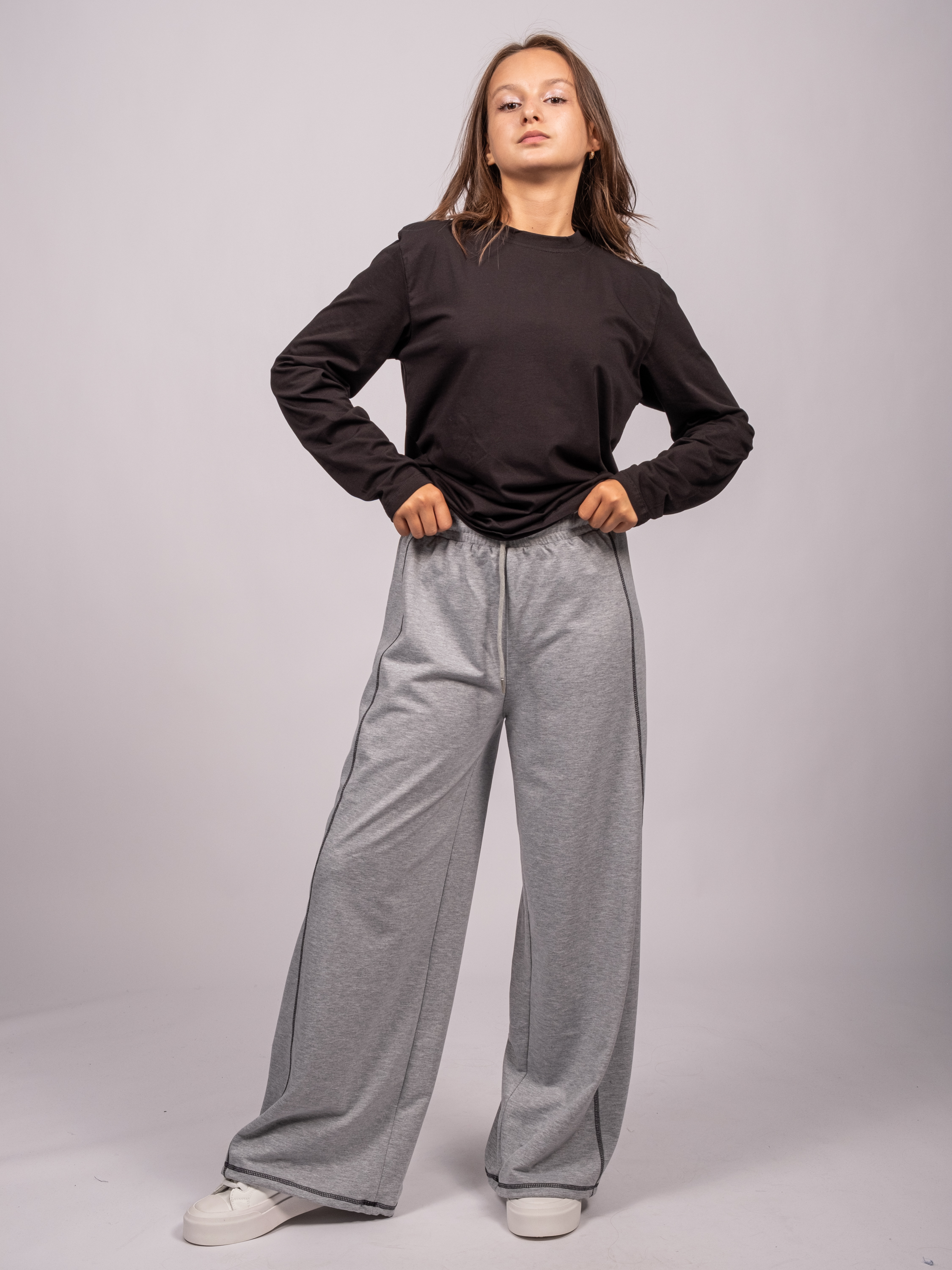 Спортивные брюки для детей школьного возраста из трикотажа  TMK оптом  созданы специально для ценителей комфорта : на поясе с  резинкой, без карманов.  Широкие, с регулируемой кулиской внизу, брюки-одни из самых актульных фасонов. Штаны отлично подойдут  на каждый день.