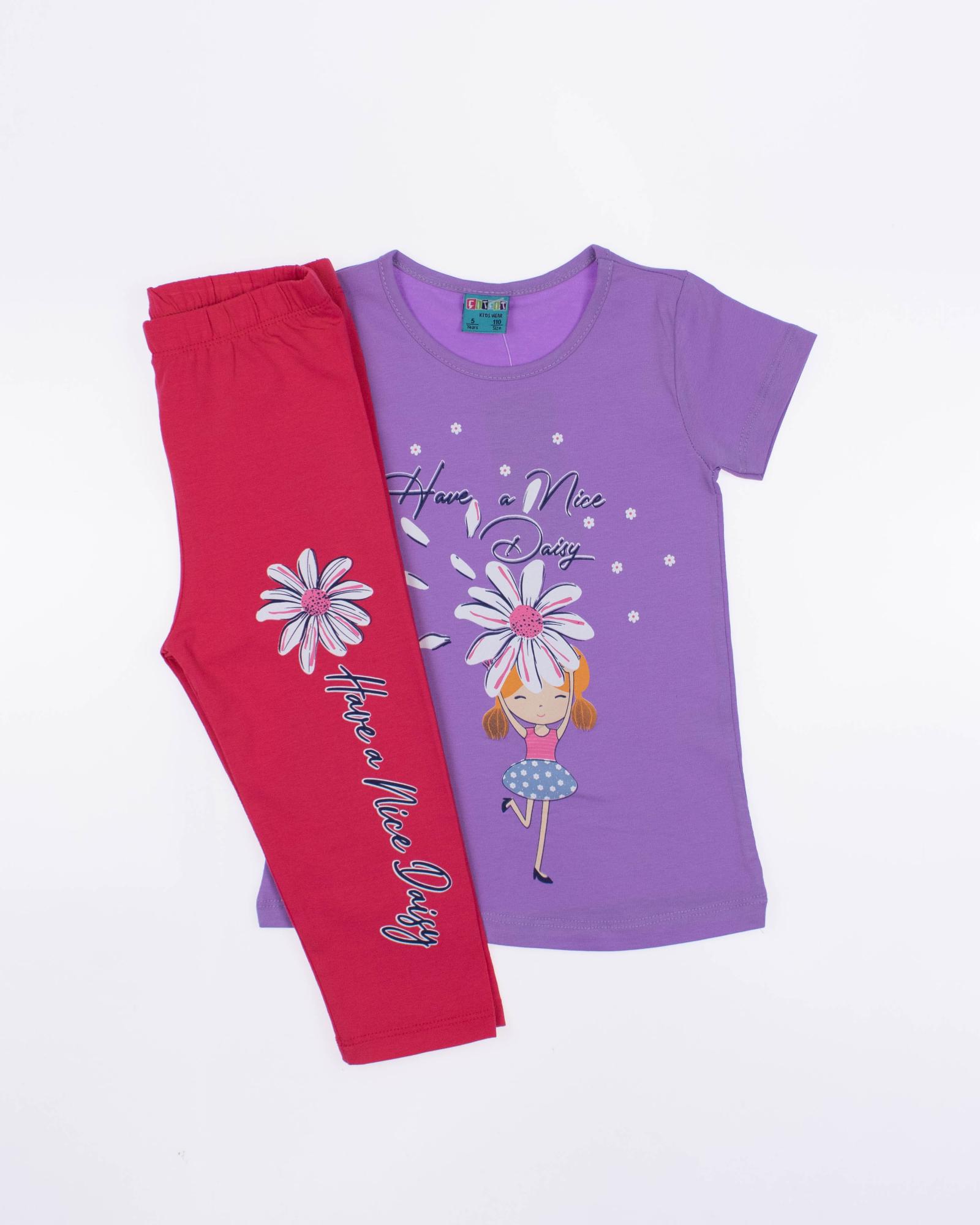 Детский костюм торговой марки CITCIT оптом - это отличный выбор для маленькой модницы! Произведенный в Турции из высококачественного трикотажа кулирка, этот костюм обеспечивает комфорт и удобство на целый день. Свободный и удлиненный  крой  делают эту футболку стильной и современной.  А принт на передней части футболки придает ей яркость и оригинальность. Этот костюм подойдет как для повседневной носки, так и для активного отдыха на свежем воздухе. А оптовая цена делает его отличным выбором для магазинов и интернет-магазинов детской одежды. Порадуйте своих малышей качественной и стильной одеждой от CITCIT!
