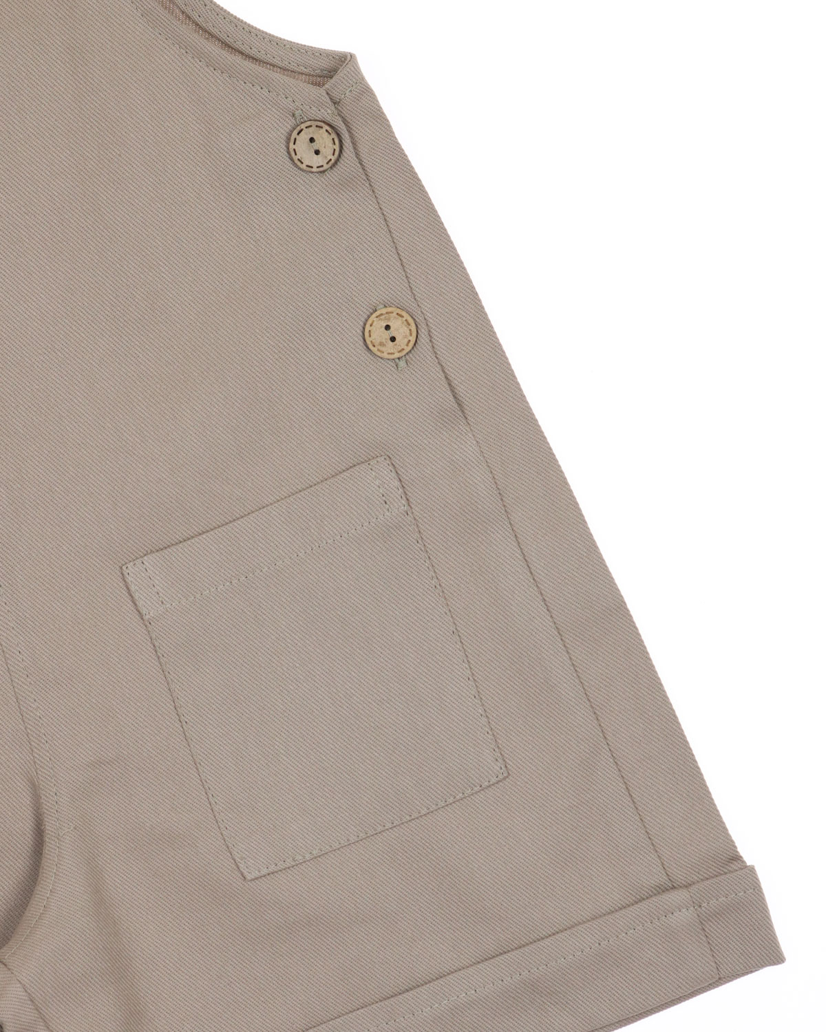 Комбинезон выполнен из хлопкового денима в пастельных тонах, спереди два накладных кармана, лямки пристегиваются на пуговицы, низ шорт оформлен отворотами. Детский джинсовый комбинезон для девочки оптом с доставкой по России в интернет-магазине Tamriko.