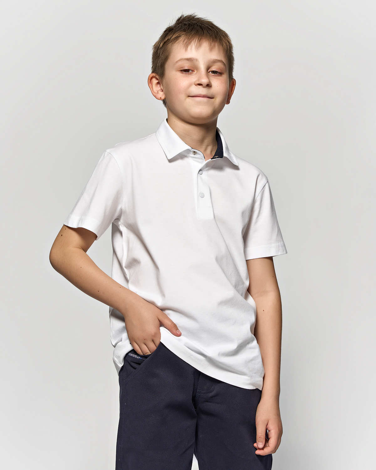 Однотонная рубашка- поло для мальчика Cegisa оптом. Поло прямого кроя с застежкой -кнопки. Изготовлена из натурального трикотажного хлопка. Модель с короткими рукавами пркрасный вариант для школы.