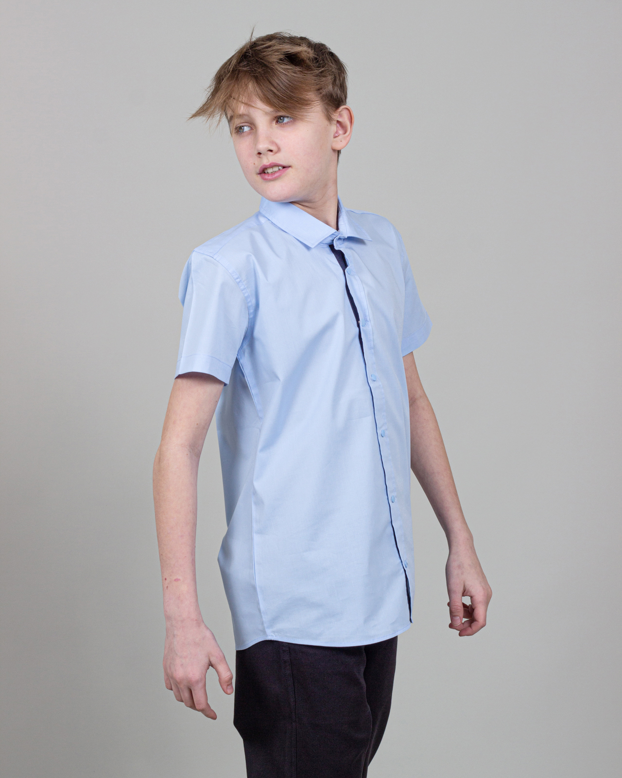 Рубашка Cegisa для мальчика оптом. Модель приталенного кроя с короткими рукавами, классическим отложным воротничком, застегивается на кнопки.