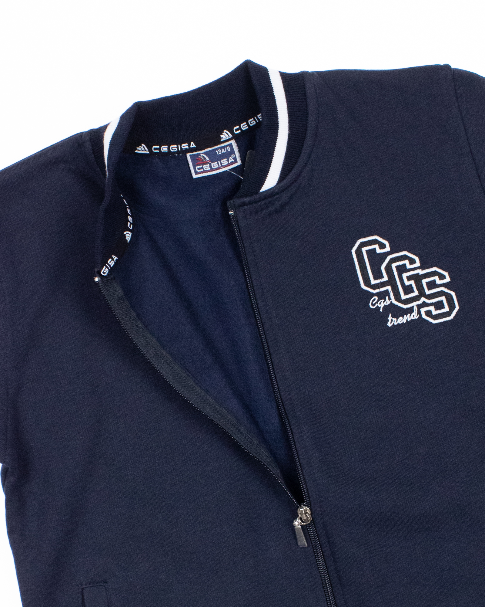 Трикотажный бомбер Cegisa для мальчика оптом. Выполнен из смесовой ткани, в составе которой натуральный хлопок с добавлением полиэстера, трикотаж плотный с небольшим начесом. Воротник стойка. Низ изделия и рукава на трикотажном манжете. Вместительные карманы и разъемная застежка - молния. Хорошо сохраняет цвет и форму при длительной носке и после многократных стирок. Прекрасно будет смотреться как школьная форма.