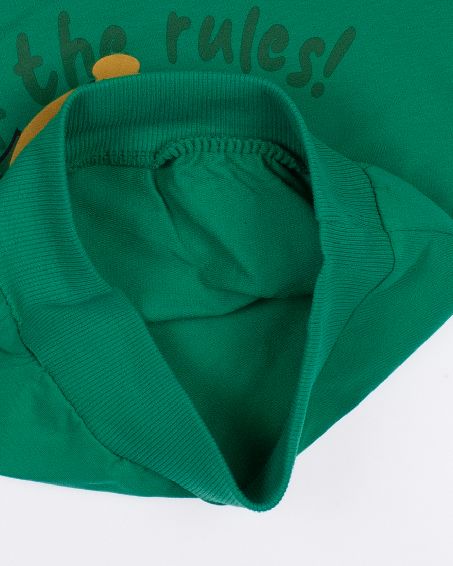 Свитшот FIRST KIDS прямого кроя с  принтом, пояс и рукава на манжетах. Такой аксессуар одежды станет незаменимым спутником в прохладноый день. Отличный вариант на каждый день. Натуральная, дышащая ткань очень удобна и практична в носке. Не растягивается и не деформируется. Идеально подходит для прогулок, в детский сад, и даже в гости. Для сохранения первоначальных свойств изделия, очень важно соблюдать рекомендации по уходу за изделием, указанные на ярлычке. Товар сертифицирован. Модель выполнена из трикотажа футер (петля).