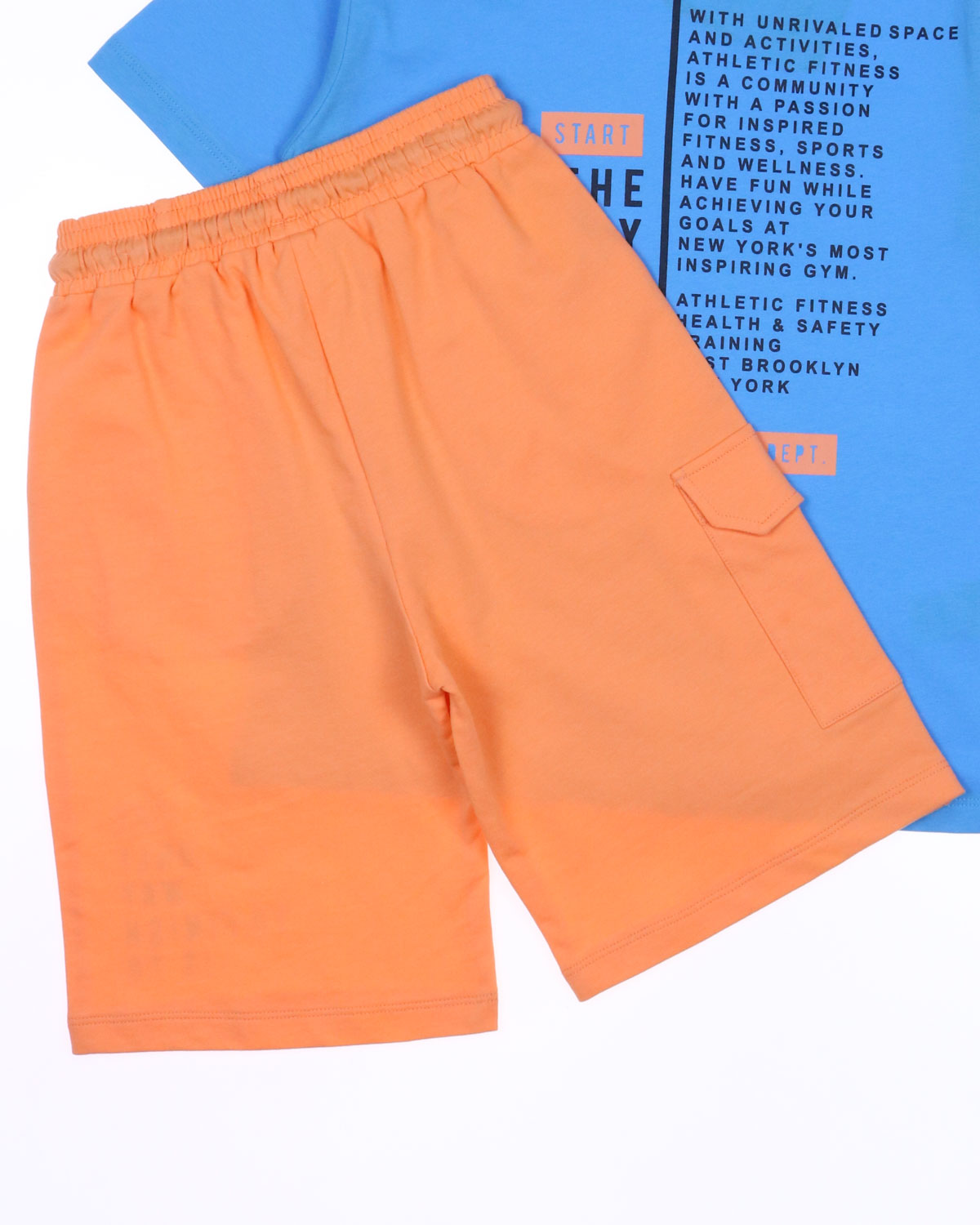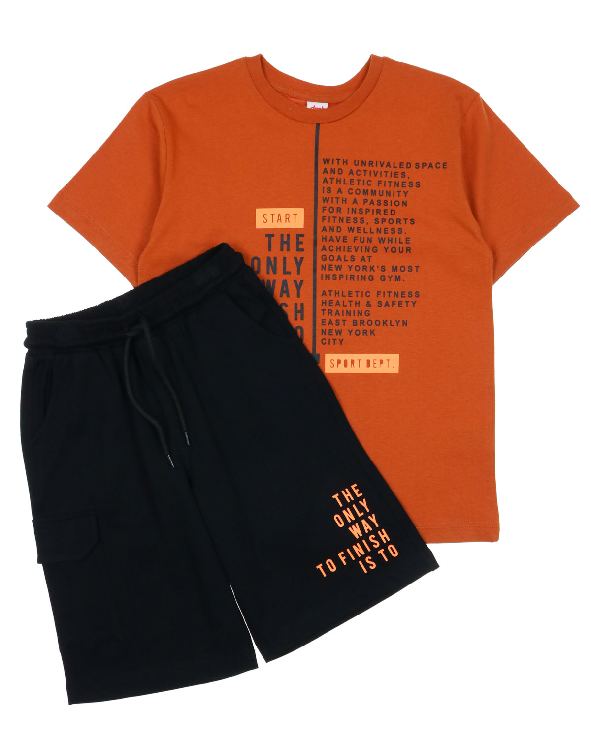 Костюм для мальчика DMB оптом. Футболка прямого кроя с короткими рукавами. Бриджи трикотажные с боковыми карманами. Пояс на резинке с функциональным шнурком позволяет ругулировать объем на талии.