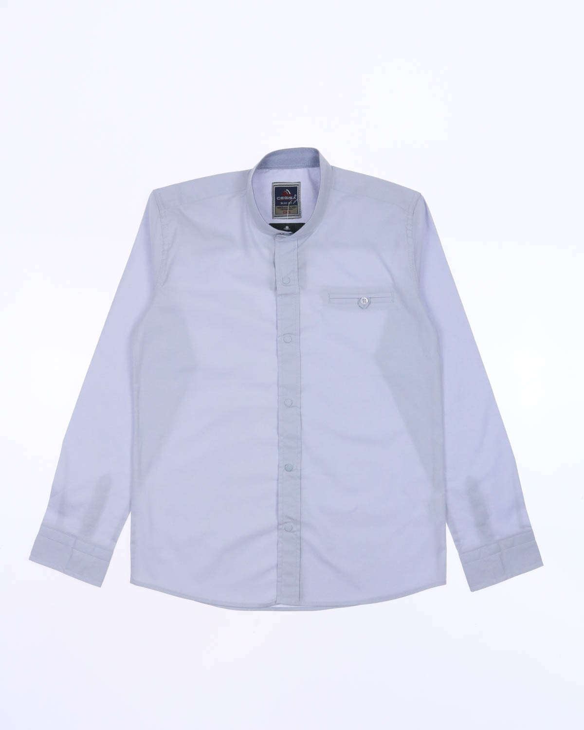 Рубашка прямого кроя с длинными рукавами,  воротничком-стойкой, застегивается на  кнопки.  На груди декоративный карман.